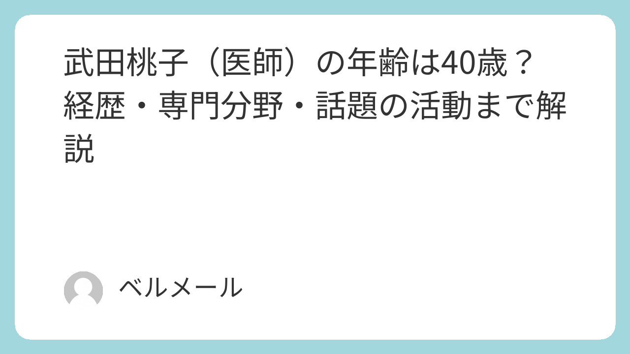 武田桃子医師の年齢は公式には公表されていません。しかし、埼玉医科大学卒業後、大学病院での研修を経て専門医を取得し、現在は武田耳鼻咽喉科の院長として活躍していることは確かな事実です。